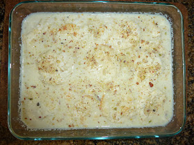 • For making the malais, mix the Ricotta cheese with 2 tbsp of sugar uniformly and fill them into the muffin baking pans. You can also transfer them into a square baking bowl and cut the baked malais into square shapes. This way, we will be having square malais in our Badam Ras.