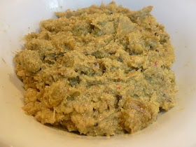 2. Grind them raw with green chillies, red chilli, ginger, tamarind and make a coarse paste.
