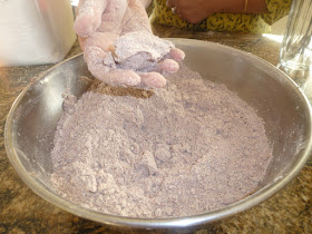 After you make the Maavu satisfactorily, place it on a thin clean cloth and steam cook the Raagi Maavu for nearly 8-10 minutes. Open the steamed Puttu Maavu and spread it on a clean dry bowl. Break down all the lumps and make it powdery.