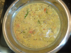 - Add required amount of salt and a pinch of sugar to the Kootu and allow to boil for few minutes.