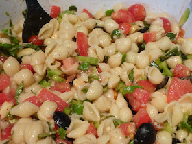 We've been growing vegetables and herbs in our small vegetable garden this summer and we are quite happy with the results too. Upon looking at the freshness, we get tempted to make some good healthy recipes using these home grown vegetables. Out of those, we decided to make a healthy pasta salad using our organic, home grown heirloom tomatoes, basil leaves, Green Pepper ( Capsicum ) and few red cherry tomatoes and pearl yellow tomatoes ( heirloom variety) as well. We included few black olives, Smoked cheese cubes ( as we like ) in our preparation too..Freshly made pasta salad tossed with olive oil, black pepper powder and Parmesan cheese was an ultimate dinner for us last night. Of course, we had few pita chips and red bell pepper home made hummus ( which i will post separately ) as sides and our favourite raspberry smoothie for our yummy dessert.